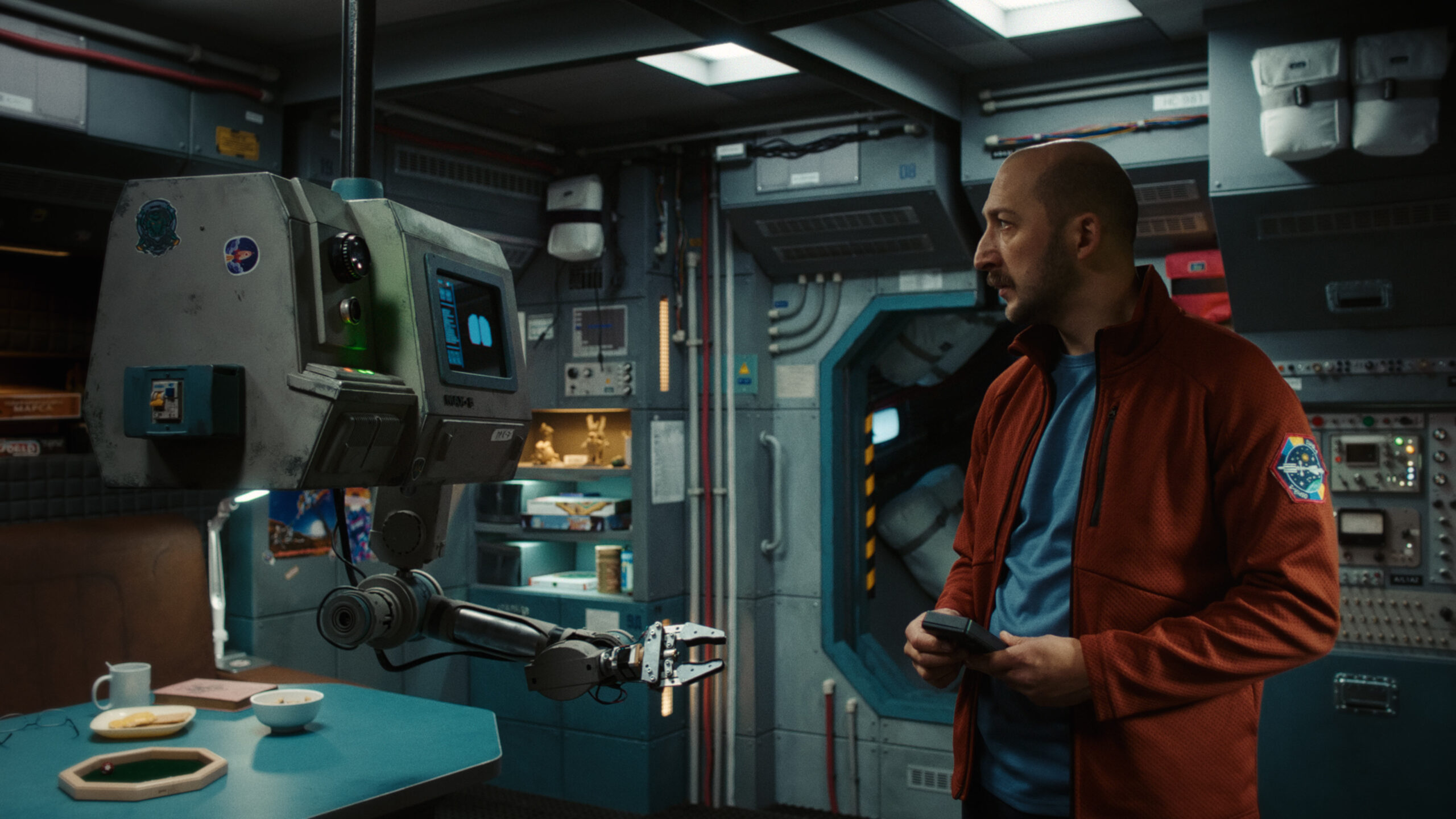 Поруч з Андрієм на кораблі — бортовий комп’ютер Максим, розповідає анекдоти та грає в шахи. А ще має драматичний акцент: чи здатна машина зрозуміти людину, а людина — довіритися машині? Робот не намальований: команді довелося створити повноцінну модель, а озвучив машину Леонід Попадько.