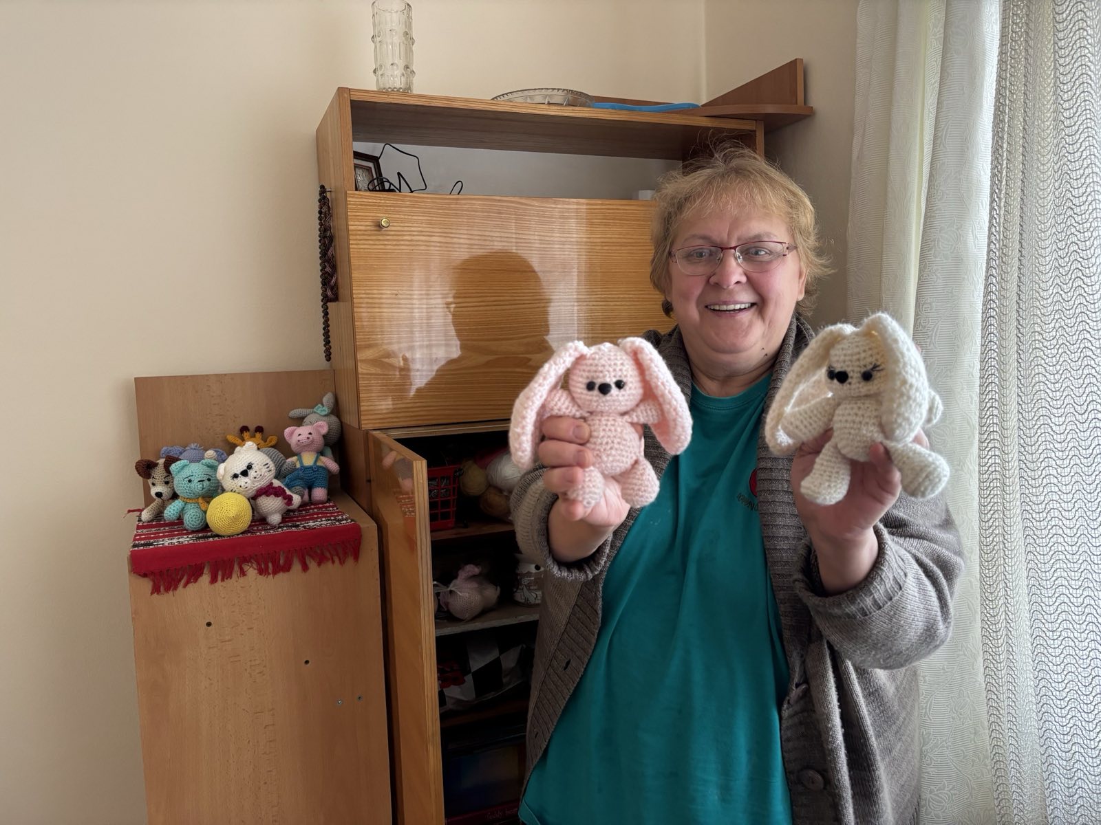 Попри власні проблеми, жінка намагається допомагати іншим. Двічі на місяць вона відвідує клуб, де разом з іншими виготовляє маленькі в’язані іграшки для дітей з онкологічного відділення у лікарні Мотол.